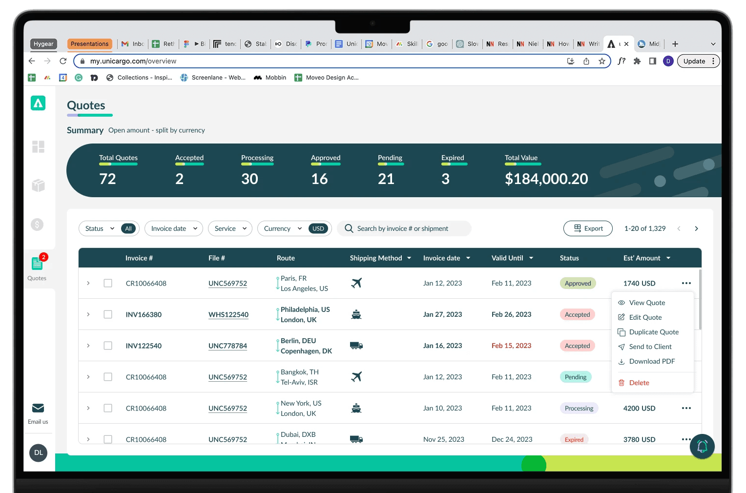 The project transforms a manual, high-stress logistics workflow into a streamlined digital powerhouse. From a salesperson's perspective, it’s like watching a cluttered desk get organized in seconds, replacing "copy-paste" exhaustion with an automated system that handles the heavy lifting. The outcome is a sleek, unified platform that eliminates errors and gives the team total control over every shipment and quote.